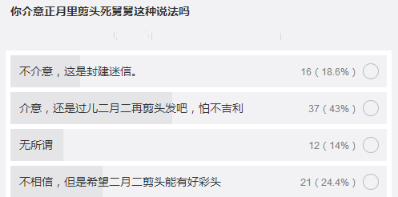 看来,还是有很多人还是很在意这件事的,小编其实一个正月里也没剪头发,所以今晚一起理发,有约的吗?